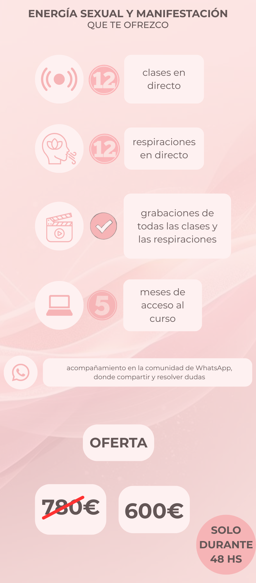 Me pasé años pidiendo al universo un cambio en mi vida, económico...emocional...de pareja, y no había manera! Me desesperé en el intento, hasta que descubrí que el trabajo de atracción de aquello que deseamos depende de un profundo proceso interior, de apertura y merecimiento. Pero no se puede solucionar repitiendo cada día "ME LO MEREZCO", no es suficiente. E igual habrás notado que la mayoría de cursos que te enseñan a manifestar se enfocan afuera, a cómo pedir al universo, a proyectar, a visualizar, pero nadie te explica que el cuerpo es la clave y la energía sexual el motor para crear otra realidad.